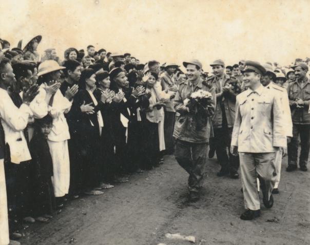 Nhân dân làng Thử Sĩ, Tiên Lữ, Hưng Yên nhiệt liệt đón mừng đoàn quân sự của nước cộng hòa Angieri tới thăm, 21/4/1959